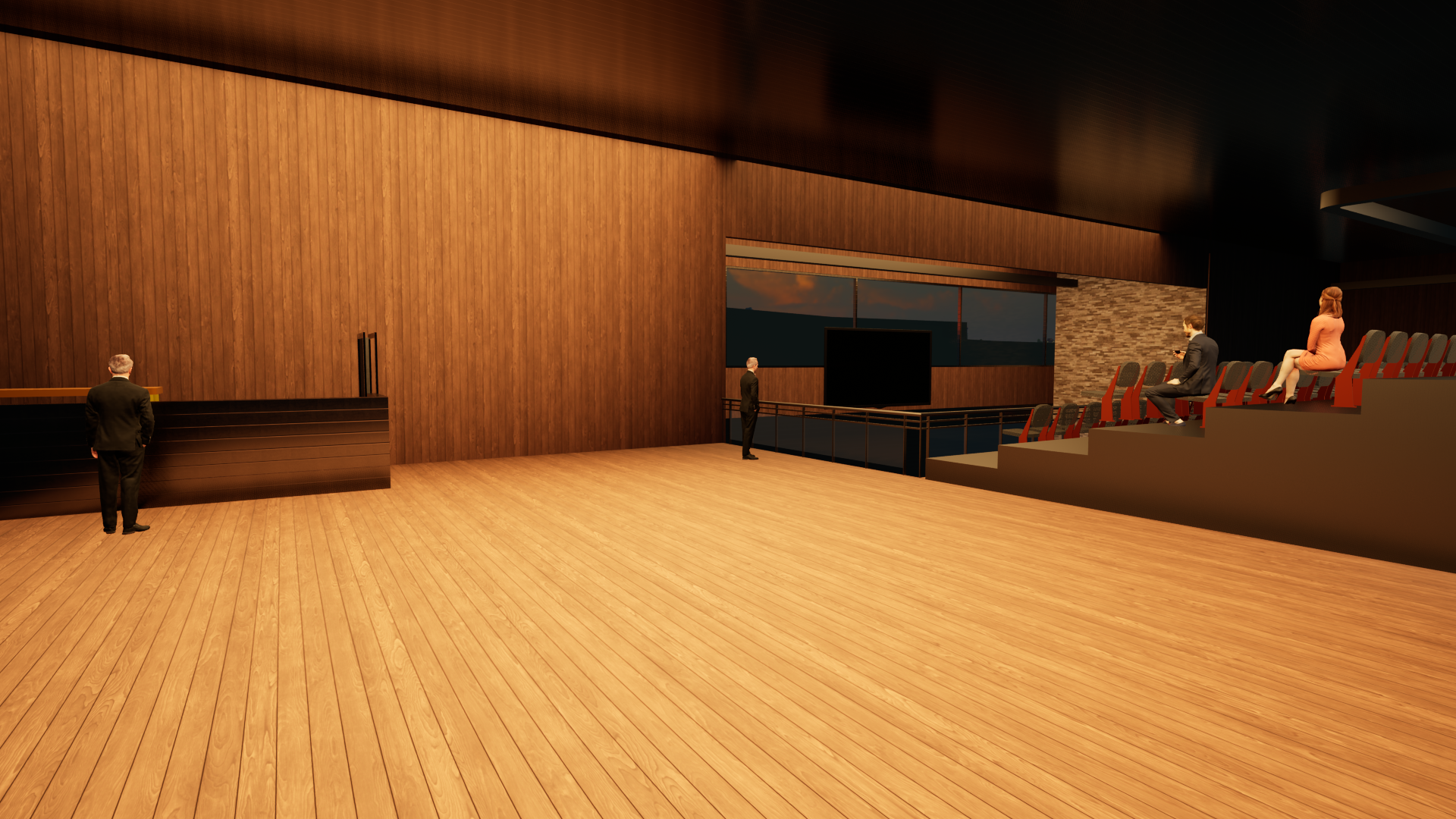 I designed a theater hall that combines natural light orientation, limestone cladding, red toned wood cladding, and integrated vegetation to create a warm, healthy and sustainable performance environment. A steel structural frame supports long-span openness, daylight apertures, and green systems, while the wood and planting establish a tactile connection to nature and local matieral heritage.